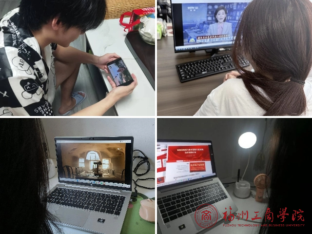 学生党员认真观看学习