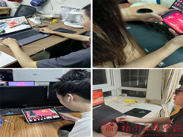 学生党员认真观看学习