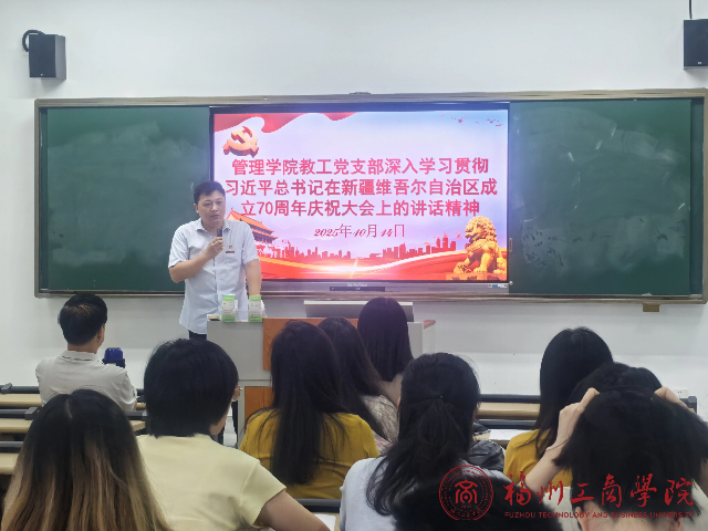 10月14日,qy球友会教工党支部召开专题学习会议,深入学习贯彻习近平总书记在新疆维吾尔族自治区成立70 周年庆祝大会上的重要讲话精神。全体教工党员参加了会议,会议由党支部书记主持。