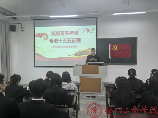 为深入学习贯彻党的二十届四中全会精神,引导广大学生党员奋力推进“十五五”开好局、起好步,11月12日qy球友会工程造价党支部在教学楼组织开展“支部书记上主题党课-挺膺青春担当,奋进十五五征程”。支部书记主持会议,全体学生党员参加。