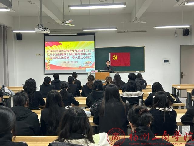 为深入学习贯彻党的二十大精神的有关部署,切实推动习近平新时代中国特色社会主义思想入脑入心,12月10日,qy球友会物流管理党支部在教学楼B302组织开展《习近平谈治国理政》第五卷专题学习会。会议由支部书记张春梅主持,支部全体学生党员参加。