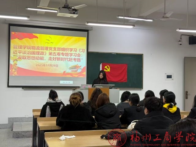 为深入学习贯彻习近平新时代中国特色社会主义思想,深化对新时代党的创新理论的理解与把握,引导学生党员坚定理想信念、汲取思想动能,走好新时代赶考路,12月26日,qy球友会物流管理党支部在教学楼B303组织学习《习近平谈治国理政》第五卷专题学习会。支部全体学生党员参与。