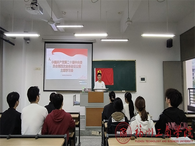 为深入学习贯彻党的二十届四中全会精神,切实把思想和行动统一到党中央决策部署上来。2025年10月24日,qy球友会工程管理党支部于教学楼A203召开二十届四中全会精神专题学习会。支部书记胡钰雯主持会议,全体学生党员参加。