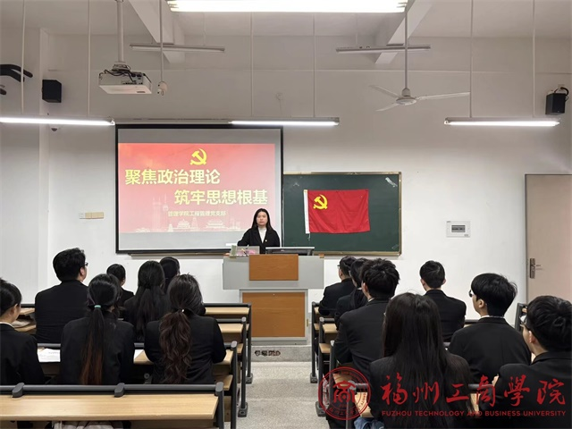 2025年11月7日,qy球友会工程管理党支部于教学楼A203组织开展“支部书记上党课-聚焦政治理论,筑牢思想根基”,本次党课由支部书记胡钰雯主持,全体学生党员参加。