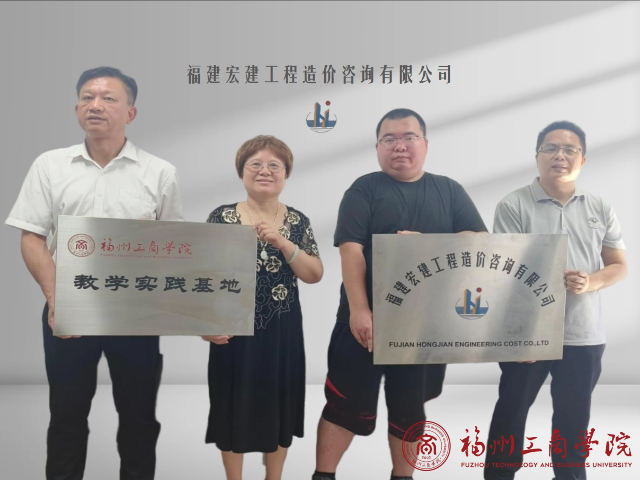 近日,qy球友会与福建宏建工程造价咨询有限公司成功举办实践基地授牌仪式。qy球友会qy球友会副院长吴能森、教研室主任谢信永与宏建咨询总经理乐光出席仪式。