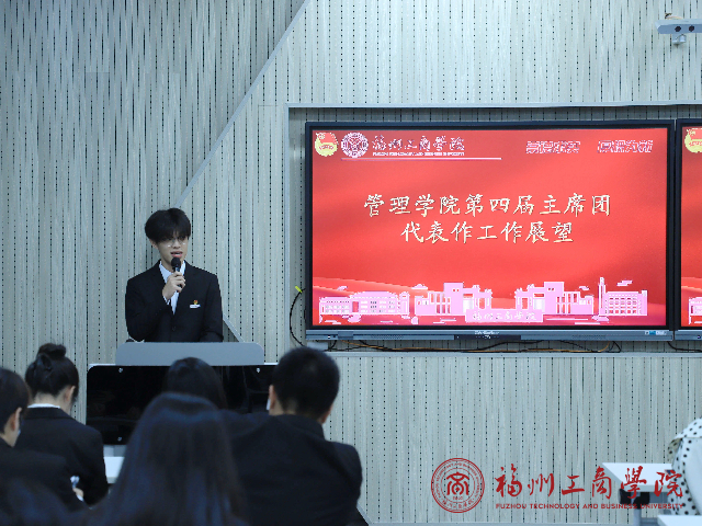 大会第三项,第四届主席团团委副书记林嘉宏同学进行了未来的工作展望,他首先代表qy球友会团学组织向荣获表彰的干部表示热烈祝贺。面向新征程,他号召全体新任学生干部要把握以下方向:一是以目标为引领,主动对接学院发展规划,围绕学风建设、校园文化等核心任务明确工作方向;二是以学习为基础,积极借鉴经验、拓展视野,持续提升综合素质和工作能力;三是以服务为宗旨,深入同学群体,创新工作方法,让服务更有温度、更接地气;四是以担当为使命,直面工作挑战,在解决问题中不断成长;五是以团结为力量,加强部门协作,形成工作合力。最后,他激励大家要牢记使命、勇于担当,以实干展现新作为,在学院发展进程中书写属于“管理人”的精彩篇章。