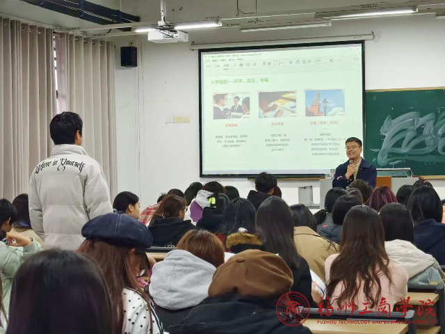 苏老师结合多年校企合作与升学指导经验,从留学与国内升学的核心差异切入,系统讲解了两者的申请流程、时间节点、核心竞争力要求等关键内容。针对留学方向,苏老师详细拆解了不同国家的院校申请偏好、语言成绩要求、文书撰写技巧及留学费用规划,通过真实案例分析帮助同学们直观了解申请中的重点与难点;针对国内升学,苏老师围绕考研择校、备考时间规划、专业课复习方法等新生关心的问题展开分享,强调了学术积累与实践经历在升学中的重要作用。此外,苏老师还就同学们普遍关注的“如何平衡本科学习与升学准备”“跨专业升学可行性”等问题进行了针对性解答,提供了兼具专业性与实操性的建议。