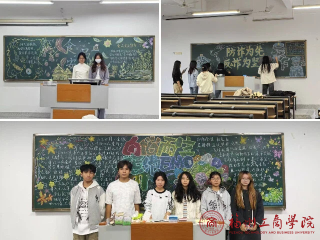 活动伊始,参与黑板报活动的工作人员将粉笔等工具带往各队伍的教室,参加活动的各队伍完成签到后抽取创作主题,随即围绕指定方向展开创作。紧接着,同学们以图文结合的形式创作板报,每幅作品均包含相关安全知识文章,内容紧扣消防安全、心理安全、反诈防骗、食品安全、交通安全等主题。创作过程中,各队伍分工协作,将安全知识转化为生动的版面设计,融合大家对各安全主题的深刻理解。