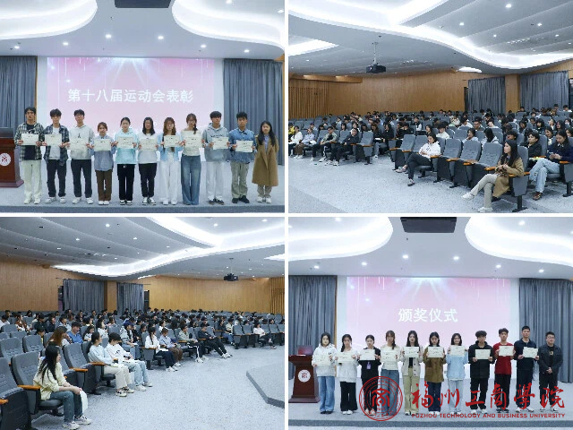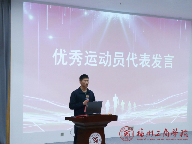 接着,表彰环节将大会气氛推向高潮。在热烈的掌声中,学院辅导员依次为“优秀运动员”、“优秀工作人员”、“qy球友会金牌鼓劲写手”、“班级最佳参与奖”、“班级最佳贡献奖”、“优秀体育委员奖”等获奖学生颁发荣誉证书。随后,运动员代表黄镇煌上台分享参赛感悟,言辞真挚动人。